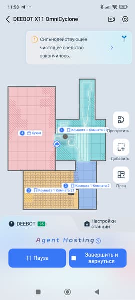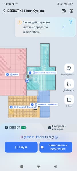 Поэтому в случае возникновения подобных казусов мы бы рекомендовали отключить интеллектуальный помощник и настроить устройство вручную (в частности, самостоятельно разметить карту, чтобы помочь роботу в определении порядка уборки). Именно так удастся добиться наилучшего результата. Тем не менее, потенциал у устройства большой: если разработчик не забросит развитие устройства и будет регулярно выпускать новые прошивки, то, возможно, Deebot X11 научится действовать более эффективно и в автоматическом режиме.