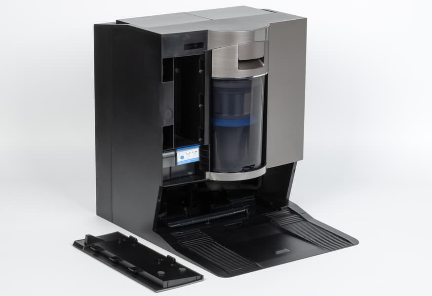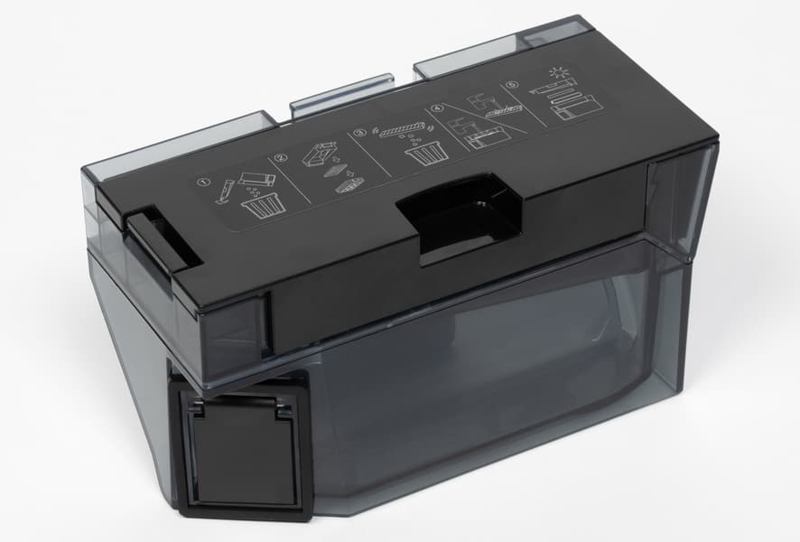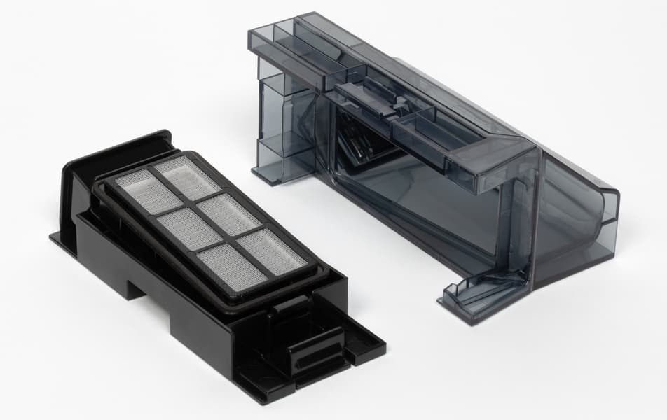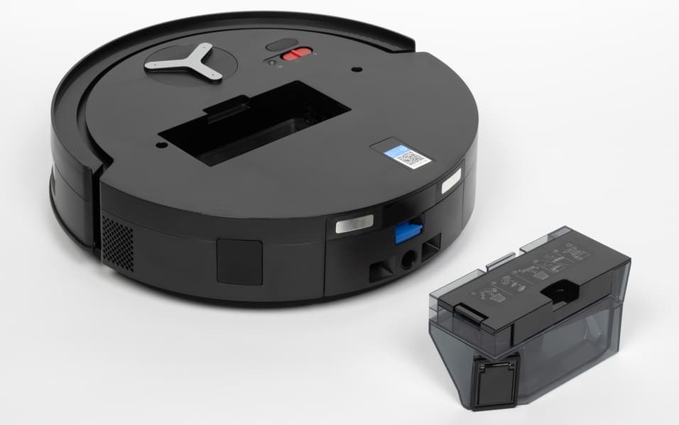 При необходимости контейнер можно разобрать и очистить вручную. Делать это, впрочем, в режиме повседневной эксплуатации не придется: весь мусор будет удаляться станцией самоочистки, а внутрь контейнера пользователю придется заглядывать, разве что, если что-то застряло внутри. Ну или если пришла пора очистить или заменить HEPA-фильтр.
