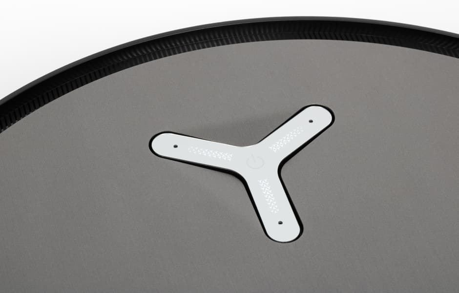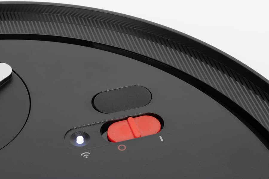 Физических органов управления у робота немного. На верхней панели расположена одна сенсорная кнопка с разноцветной светодиодной подсветкой, с помощью которой можно выполнить базовые операции — начать уборку, поставить уборку на паузу, отправить робота на станцию для подзарядки.