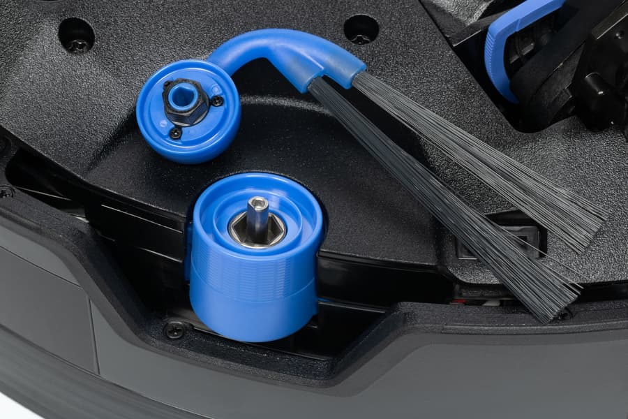 Главное необычное техническое решение заключается в поднимающейся (и выдвигающейся вбок) роликовой насадке. Она давит на поверхность с силой в 3800 Па и вращается со скоростью 200 оборотов в минуту что обеспечивает высочайшее качество мытья полов. Ну а возможность использования контейнеров с моющими средствами позволит и вовсе забыть о необходимости мытья полов вручную.