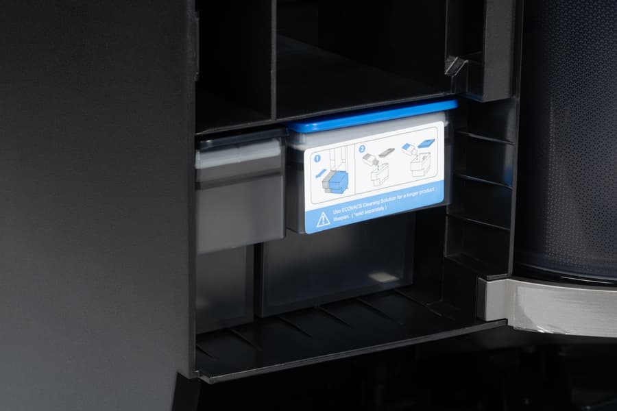Под ней мы найдем два контейнера для моющих средств, которые предстоит докупить отдельно.