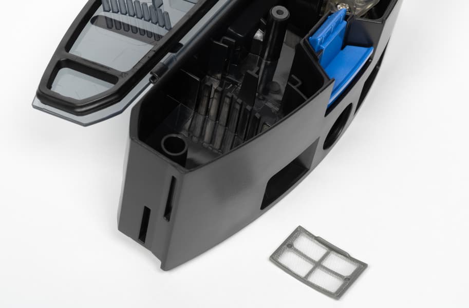 Система фильтрации состоит из HEPA-фильтра и сеточки из синтетического материала. Пылевой тракт прямой.