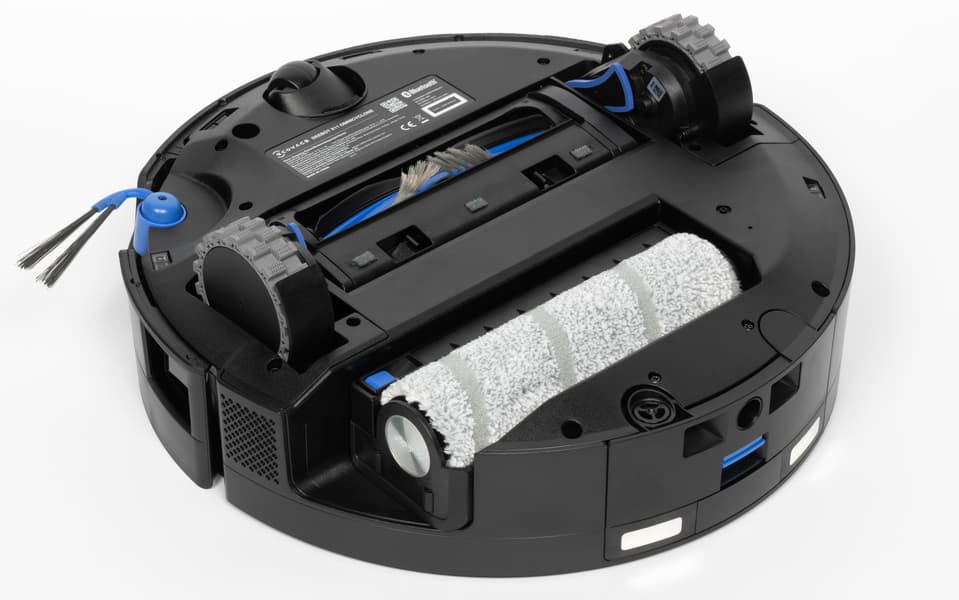 Также производитель сообщает, что такая система обеспечивает давление на поверхность в 3800 Па и скорость вращения в 200 оборотов в минуту, что в совокупности позволяет роботу эффективно оттирать пятна (в том числе и засохшие жидкости типа пролитого кофе). Сама насадка непрерывно промывается в процессе уборки, а грязная вода будет удаляться.