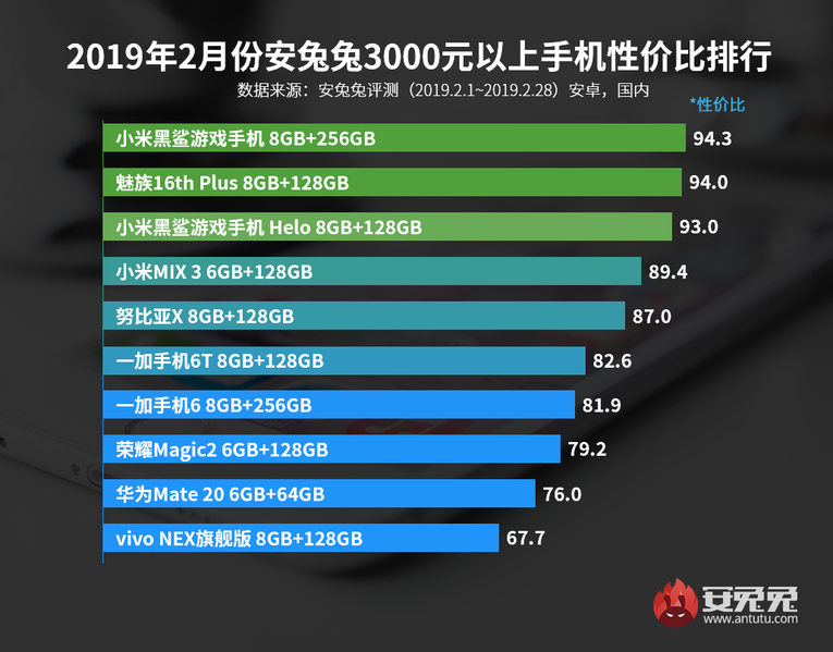 Компания AnTuTu опубликовала несколько рейтингов, в которых собраны лучшие смартфоны из мира Android по соотношению цены и качества (или цены и характеристик) в разных ценовых категориях по состоянию на февраль этого года.