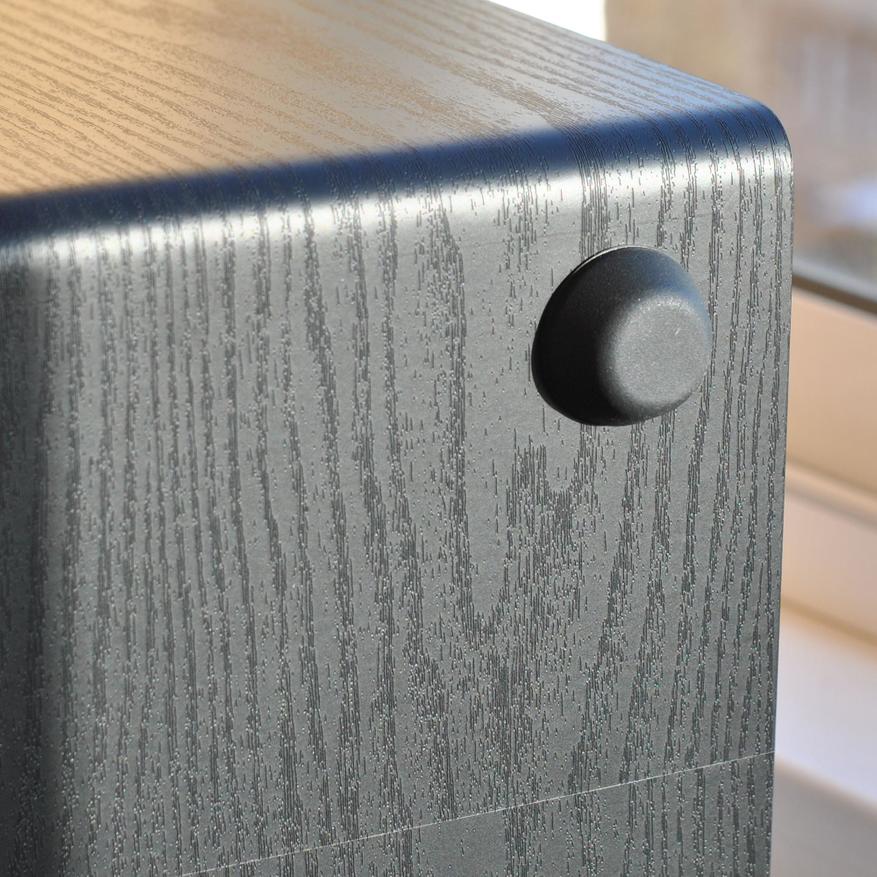Углы скруглены, пленка приклеена ровно (шов снизу), стоит корпус на массивных резиновых опорах выстой 1,5 см (дополнительная виброразвязка).