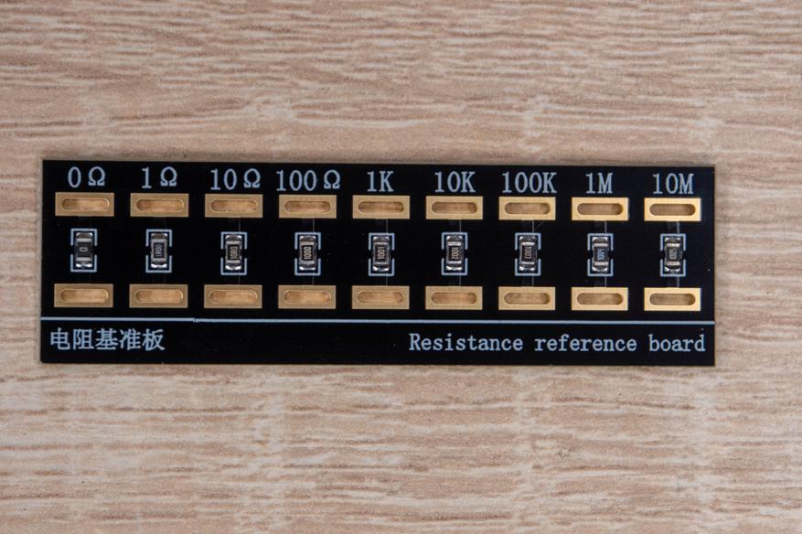 В качестве опорного сопротивления использовал калибровочную планку, которая была в комплекте с тем же LCR-ST2. Компенсации щупов нет, при КЗ отображается сопротивление 0.31Ω, это нужно учитывать.