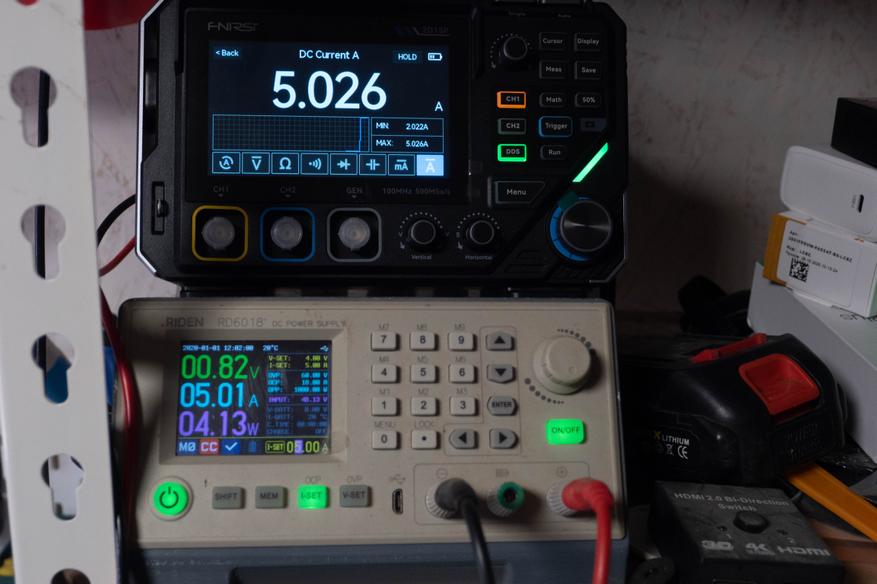 В режиме измерения силы тока остановился на 5А, чтобы потом не лезть внутрь для замены предохранителя, показания при этом довольно точные, разбег с показаниями блока питания в одну сотую.