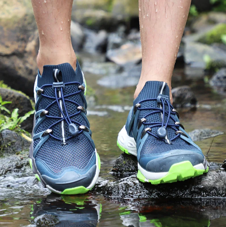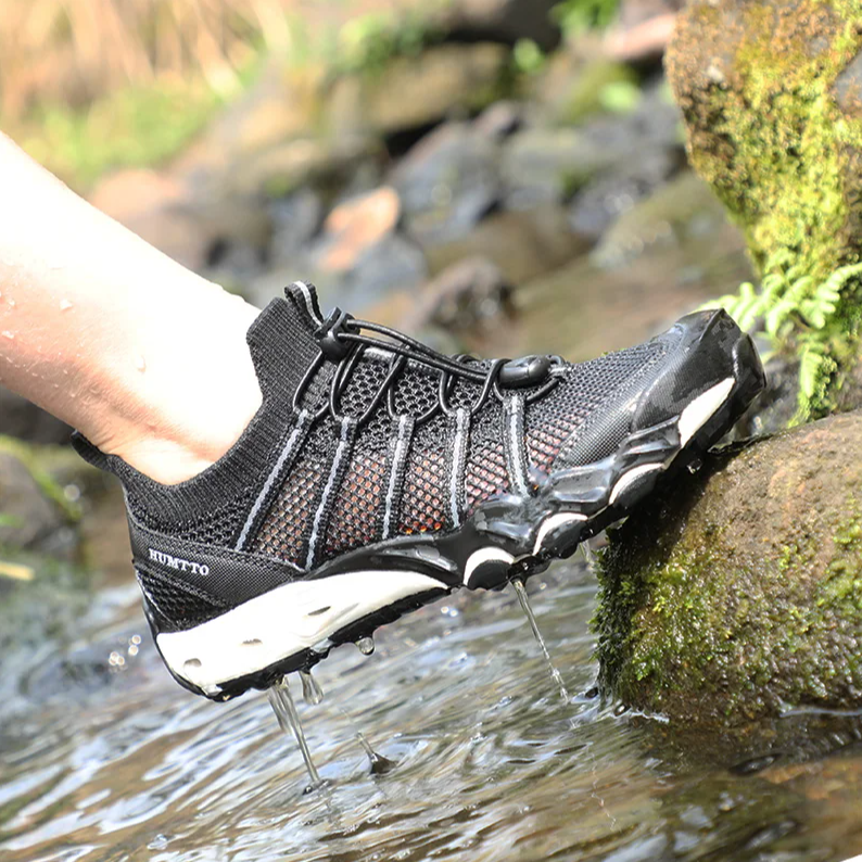 Это принципиально иной тип обуви, созданный не только для каменистой местности, но и для активностей у воды. Naturehike разработала эту модель для тех, кто не боится форсировать ручьи или бродить по мокрым скалам. Аквашузы обеспечивают максимальное сцепление на мокрых и скользких поверхностях, будь то речная галька или обросший водорослями бетон. Лично я владею такой парой обуви уже 4-ый год и использую не только в походах, но и для плавания среди кораллов и на сапборде.