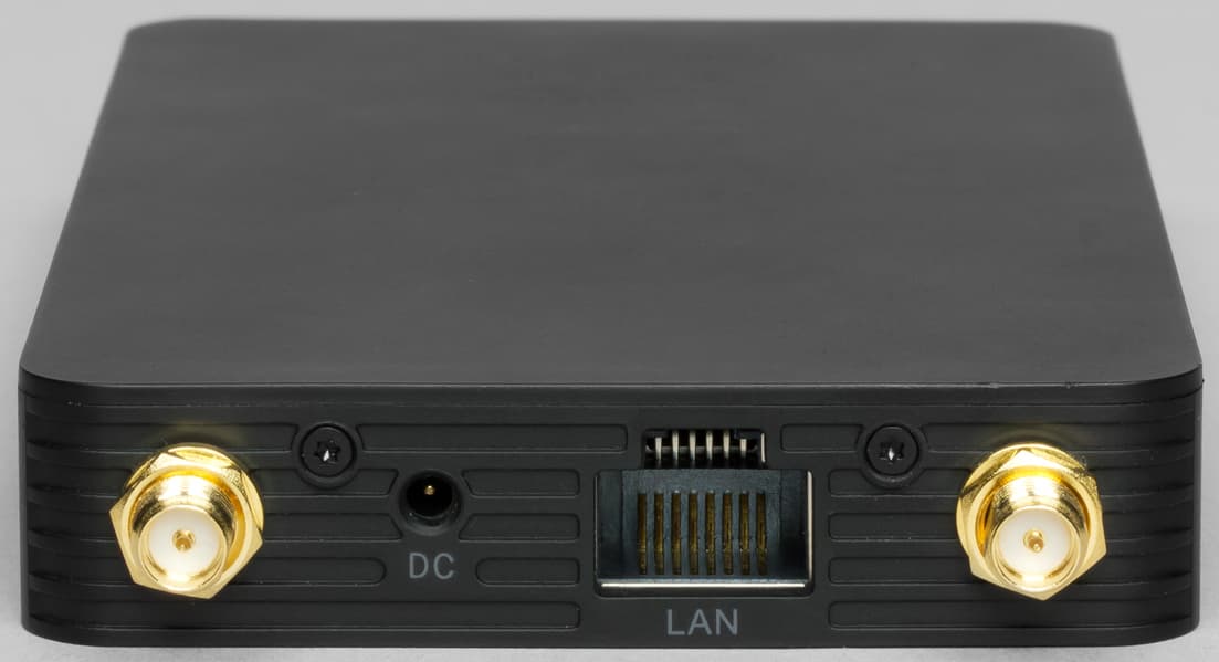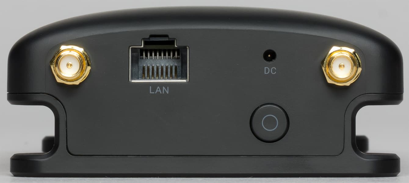 В верхней части, помимо антенных гнезд, расположен вход для адаптера питания и разъем LAN для соединения с камерой. Нижняя части корпуса оснащена резьбовым отверстием 1/4″ для крепления к штативу или камере.