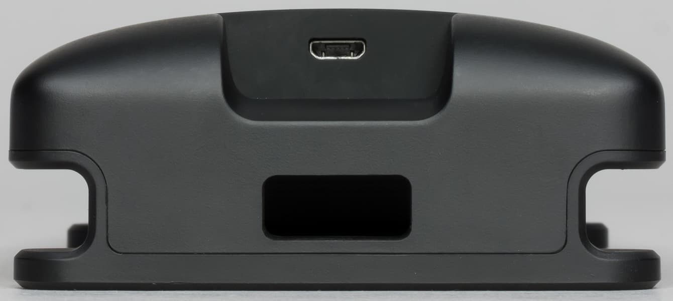 На верхнем торце находятся гнезда антенн, LAN-порт для подключения к ПК, вход адаптера питания для зарядки встроенного аккумулятора, а также кнопка включения/выключения устройства. В углублении нижней части корпуса имеется единственный разъем Micro-USB, предназначенный для соединения с мобильным устройством. Как видим, резьбовых отверстий в корпусе не предусмотрено — и правильно, его положено удерживать в руках.