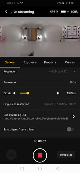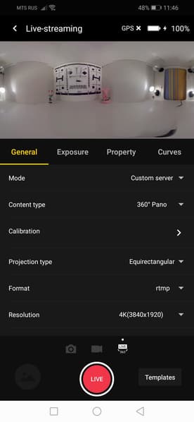 Камера Insta360 Pro 2, как и предыдущая версия аппарата, может использоваться не только для автономной записи с последующей обработкой полученного материала и выгрузкой его на какие-то сервисы. Вторая (не по важности, а по счету) функция камеры — это прямая трансляция. Она возможна как по локальной сети, так и через HDMI-видеовыход. Оба способа трансляции допускают передачу видеопотока с максимальным размером кадра 3840×2160 в любом из представленных в камере режимов, включая 3D.