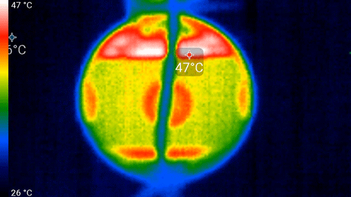 В один из дублей, которые снимались с выключенным вентилятором, был зафиксирован нагрев корпуса камеры с помощью тепловизора. Оказалось, что за несколько минут беспрерывной видеозаписи с выключенным вентилятором аппарат нагрелся в некоторых областях до 47 °C.