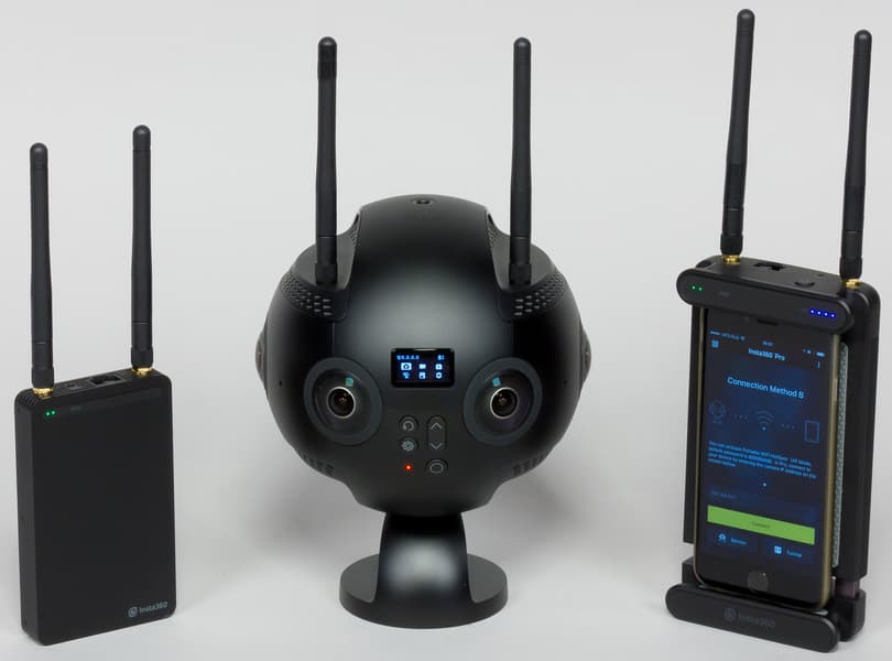 Зачем мы так привязались к этой системе Insta360 FarSight? Ведь удаленную связь с камерой можно осуществлять и методом Wi-Fi Direct, когда смартфон подключается к беспроводной точке, которая создается самой камерой. Можно, вот только максимальное расстояние, на котором будет поддерживаться такая связь, не превышает 20 метров. Между прочим, в предыдущей модели камеры это расстояние было вдвое меньше, всего-то 10-15 метров на открытой местности. Такое увеличение расстояния устойчивой связи — заслуга появившейся в Insta360 Pro 2 внешней Wi-Fi-антенны.