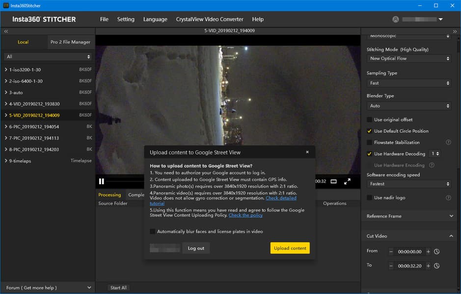 Программа Insta360 Stitcher, помимо обычной склейки материала в панорамы, умеет выгружать фотографии в сервис Google Street View, для этого потребуется «привязать» программу к аккаунту Google.