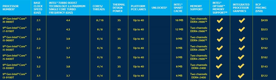 Энергоэффективные процессоры, обозначенные индексом T, представлены отдельным слайдом.
