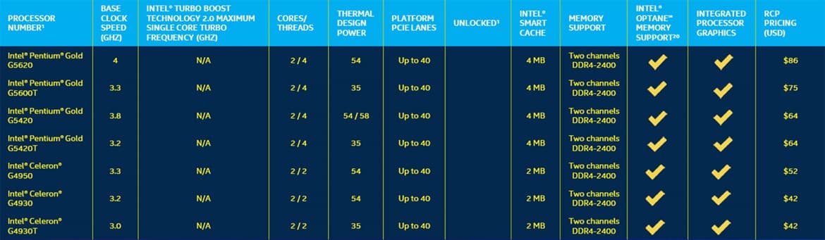 Эти процессоры, как и их мобильные собратья, поддерживают до 128 ГБ оперативной памяти, перспективный адаптер беспроводной связи Wi-Fi 6 AX200 и различные варианты памяти Intel Optane.