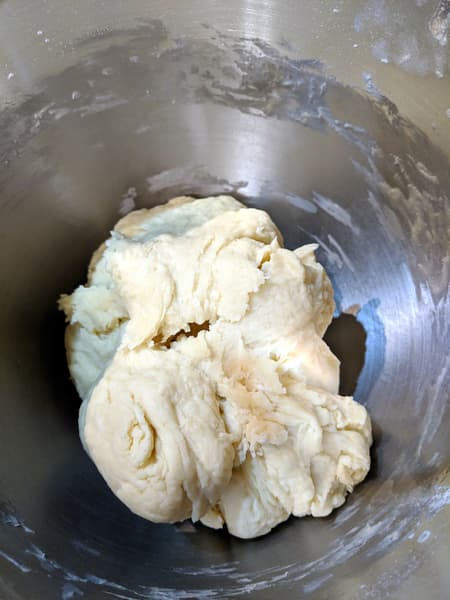 Тесто замесилось просто прекрасно — и всего за три с половиной минуты. Сначала мы беспокоились, так как количество крошки на дне миски все не уменьшалось, но затем тесто стало однородным, гладким и эластичным.