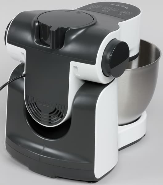 К прибору можно докупить дополнительные аксессуары. И не просто насадки, а новые способности, которые превратят его в кухонного многостаночника: стационарный блендер и мини-измельчитель (устанавливаются в гнездо на крышке), а также насадку-терку и насадку-мясорубку (их подключают к переднему гнезду на опускающемся плече). Но у нас на тестировании их не было, так что в этой статье мы о них больше не упоминаем.
