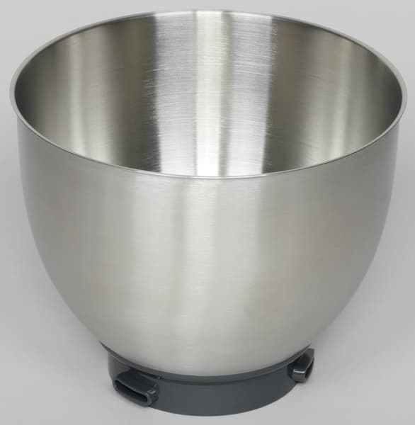 Кстати, о чаше: она из нержавейки с пластиковым креплением. К прибору крепится поворотным движением, которое легко сделать чрезмерным — потом обратное дается с большим трудом, так как стенки слишком тонкие и за них толком не ухватить. Зато чаша, несмотря на круглое дно, устойчиво стоит на поверхности. Ее вполне можно использовать для хранения остатков теста (недолго).