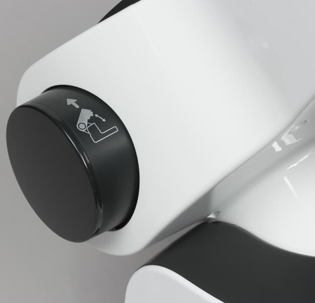 Плечо для насадок поднимается и опускается с помощью специальной круглой рукояти на левой стороне корпуса. Удобно: левой рукой крутишь рукоять, правой поднимаешь или опускаешь плечо. Как крутить — нарисовано на самой рукояти.