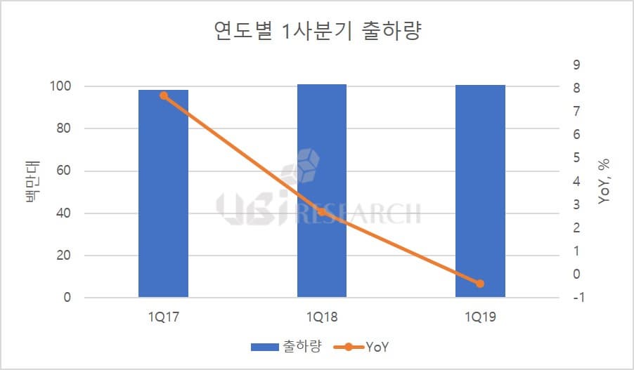 Хотя уже подходит к концу второй квартал, аналитики компании UBI Search только-только подвели итоги первого квартала на рынке панелей AMOLED. Согласно их подсчетам, за три месяца с января по март было отгружено 110 миллионов единиц этой продукции, что на 0,4% меньше, чем в первом квартале 2018 года.