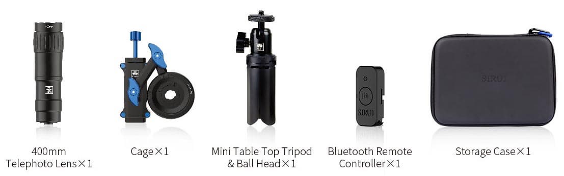 Помимо нее, в набор 400mm Telephoto Lens Kit входит крепление для установки насадки на смартфон, миниатюрный штатив, пульт ДУ и чехол.