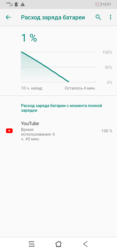 Если говорить про автономность смартфона Blackview A60 Pro, то в обычном пользовании заряда аккумулятора хватает на 2 дня неактивного использования: звонки, смс и немного интернета по wi-fi. При просмотре видео на youtube на максимальной яркости по сети 4G заряда аккумулятора хватило на 6ч 45мин. Единственное хотел бы отметить, что видео на ютубе через мобильное приложение доступны только в разрешении 480р, а смотреть в таком качестве на 6" экрана для человека, который пользовался смартфоном подороже, будет не комфортно.