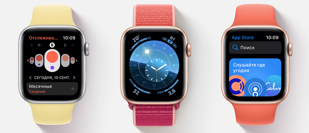 В операционной системе watchOS 6 появились дополнительные функции, позволяющие следить за здоровьем и оставаться в форме. Новое приложение «Отслеживание цикла» хранит данные о менструальном цикле и прогнозирует начало нового цикла и окна фертильности.