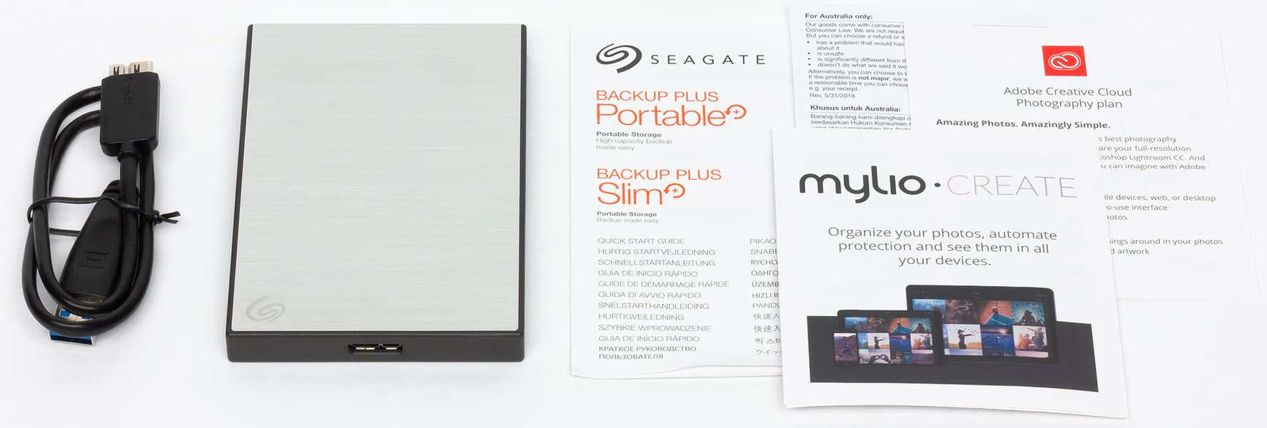 На CES 2019 компания Seagate официально обновила все три линейки семейства. Backup Plus Portable Drive — «толстые» модели на 4 и 5 ТБ, аналогичные изученной нами пару лет назад. Backup Plus Ultra Touch — пожалуй, самые интересные: накопители на 1 и 2 ТБ с разъемом USB Type-C, поддержкой шифрования данных и в корпусах черного и белого цвета, имитирующих ткань. Что же касается Backup Plus Slim, то это более дешевые модели безо всякого шифрования, но той же емкости.