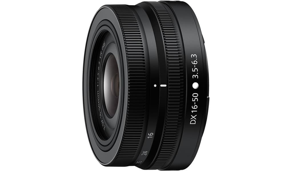 Модель Nikkor Z DX 16-50mm f/3.5-6.3 VR производитель характеризует как «сверхкомпактный широкоугольный зум-объектив». Охватывая диапазон ЭФР 24–75 мм, этот стабилизированный объектив имеет складную конструкцию и в сложенном состоянии почти не выступает за габариты корпуса камеры. Эффективность стабилизатора производитель оценивает в 4,5 ступени экспозиции.