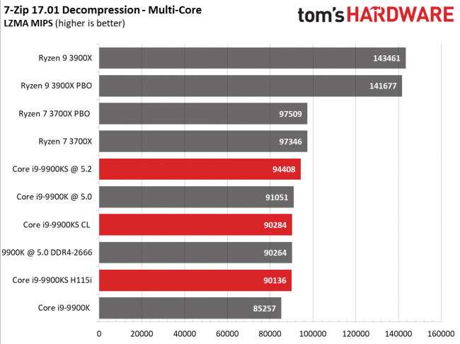 Core i9-9900KS ненамного быстрее Core i9-9900K, при этом почти всегда очень сильно проигрывает Ryzen 9 3900X. А ведь последний, судя по слухам, ещё и дешевле. По производительности Core i9-9900KS скорее конкурент для Ryzen 7 3700X, но разница в цене между этими процессорами будет около 150-200 долларов.