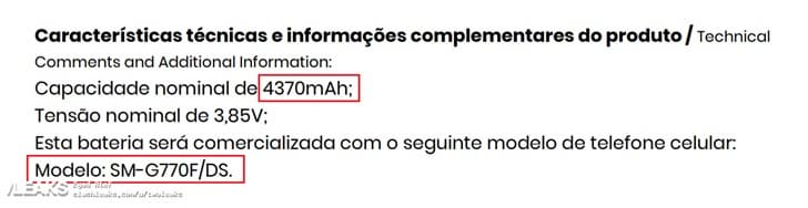 В Сети появился документ с описанием аккумулятора перспективного смартфона Samsung с каталожным номером SM-G770F. В нем говорится, что емкость элемента питания составила 4370 мА·ч. Это гораздо больше, чем у Galaxy S10 (3400 мА·ч), и даже чем у Galaxy S10+ (4100 мА·ч). Вот такой вот «лайт» этот Galaxy S10 получается.