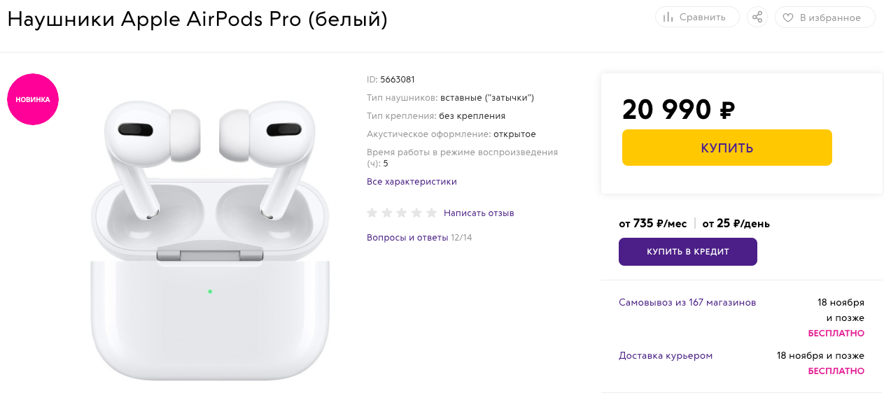 Наушники AirPods Pro предлагаются по рекомендованной розничной цене 20 990 рублей. Для сравнения, в США они обойдутся в 250 долларов, что по текущему курсу соответствует примерно 16 010 рублям.
