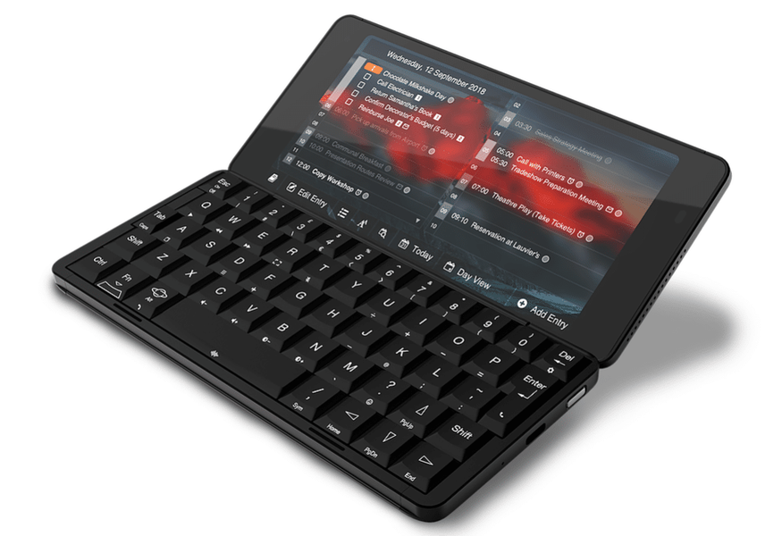 Устройство выполнено в стиле культовых коммуникаторов прошлого — Psion Series 5, Nokia Communicator и Sharp Netwalker.