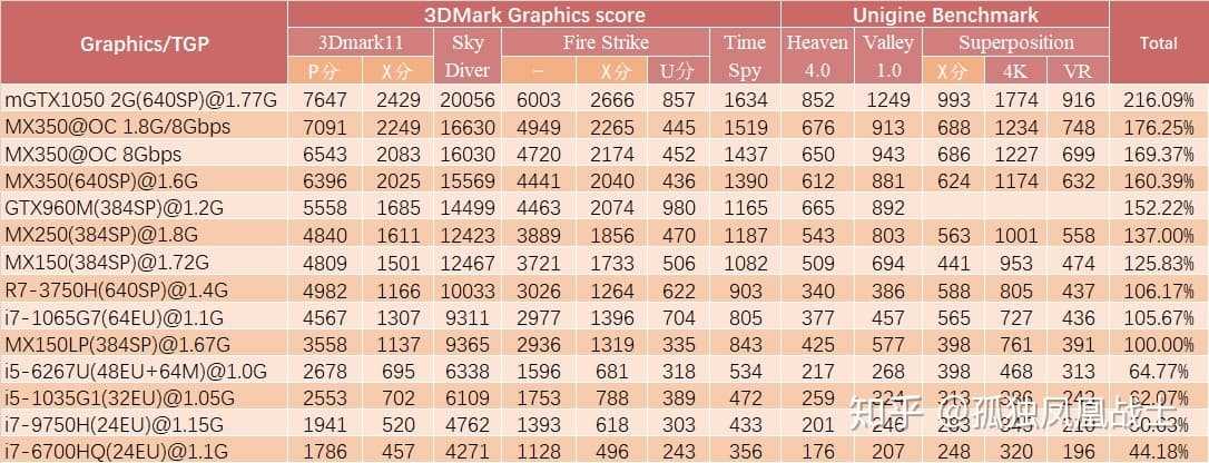 Если же MX350 разогнать, то отрыв от MX250/MX330 увеличится до 28%, но GTX 1050 всё равно будет впереди, обеспечивая на 23% большую производительность. При этом вряд ли многие будут заниматься разгоном бюджетной мобильной видеокарты, так что такой сценарий интересен в большей степени с теоретической точки зрения.
