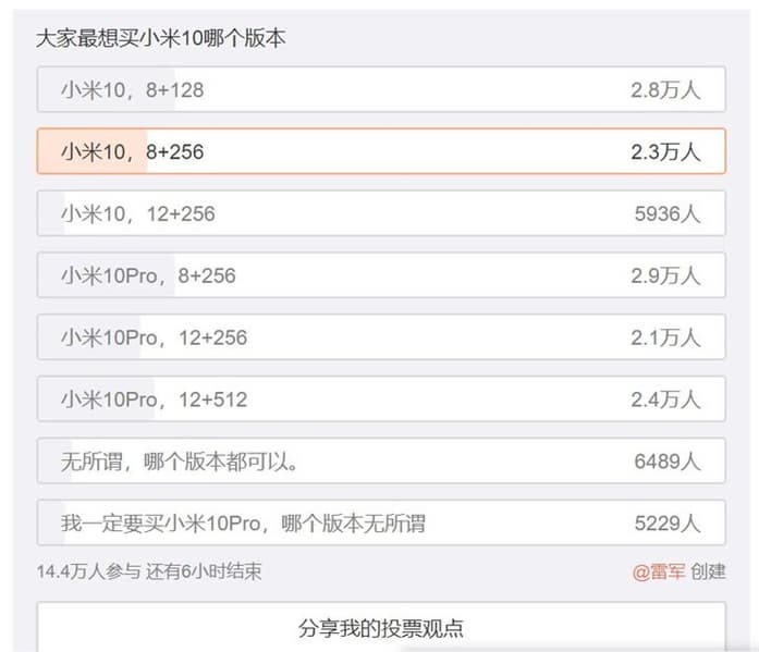 Топ-менеджеры Xiaomi часто устраивают на своих официальных страницах в социальной сети Weibo различные голосования по поводу тех или иных функций своих смартфонов. Очередное такое устроил глава компании Лей Цзунь (Lei Jun). Он спросил у пользователей, какие версии моделей Mi 10 и Mi 10 Pro им наиболее интересны.