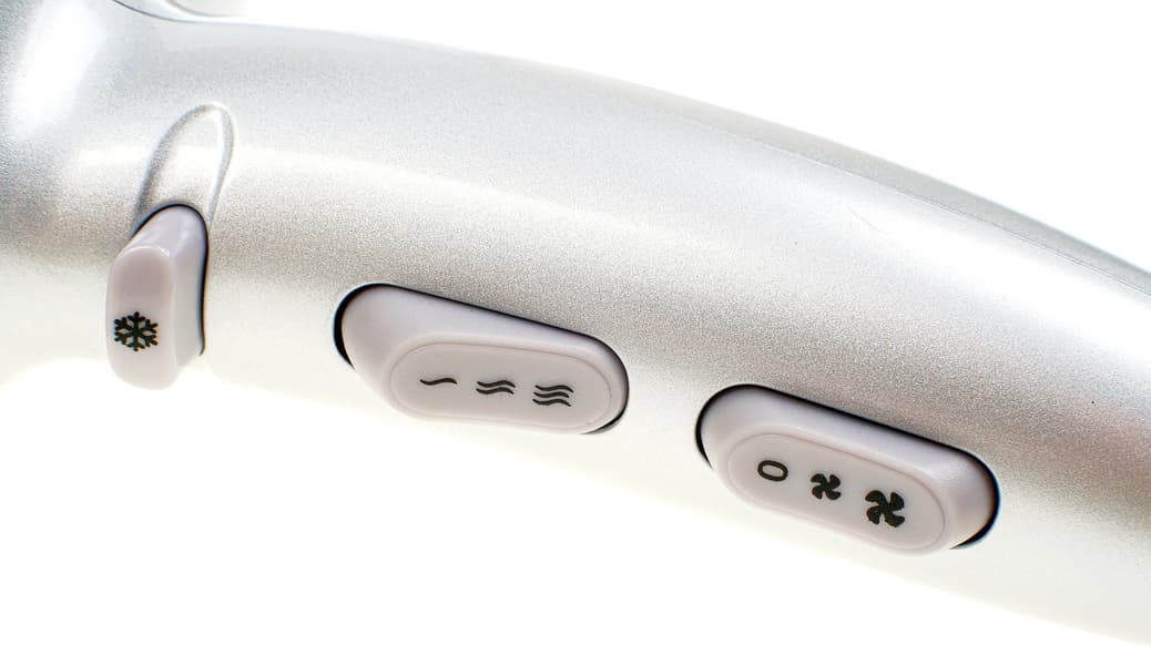 Кнопки управления мощностью и температурой выходящего потока расположены в обычном для большинства фенов месте. Кнопка подачи холодного воздуха лежит под указательным или большим пальцем в зависимости от того, как обхватывать ручку. Для переключения режимов что мощности, что температуры можно не прерывать работу. Мощность потока воздуха изменяется мгновенно при переключении. Изменение температуры воздуха требует некоторого времени.