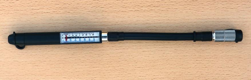 Манометр проградуирован в привычным нам Барах и «буржуйских» PSI (фунтах на квадратный дюйм). Максимальная величина давления — 8 Бар (120 PSI).