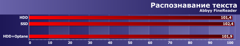 Еще один пример ситуации, когда в принципе нет необходимости тратить деньги ни на отдельный, ни на кэширующий накопитель: само по себе распознавание многостраничного документа и более производительные процессоры загружает работой на все 100%, так что данные «подносить» слишком быстро не требуется.