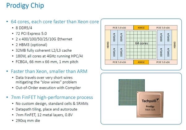 Интересно, что Tachyum ничего не говорит об архитектуре процессора, а тут возможны как самые распространенные варианты вроде RISC, MIPS и ARM до экзотики в виде «собственной разработки». При этом в компании уверяют, что по одно- и многоядерной производительности Prodigy T16128 обходит Intel Xeon, оставаясь более компактным сходного по параметрам CPU на архитектуре ARM. В общем, не процессор, а чудо. На бумаге, конечно.