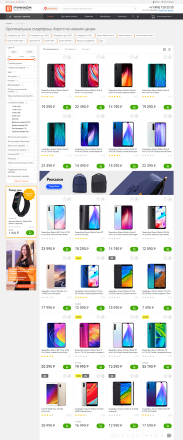 На странице раздела каталога нас ждет «плитка» из мини-карточек товара с изображением, названием, рейтингом, ценой и кнопкой покупки. Возможно переключение на представление в виде иллюстрированного списка, а также несколько вариантов сортировки. В верхней части страницы представлены ссылки на перечни, составленные на основании какого-либо одного признака — от цены до принадлежности к серии устройств. Но самое интересное — это, конечно, подробная система фильтров в левой колонке. Количество признаков в ней довольно велико, работает все корректно. В целом каталог получился очень удобным в использовании.