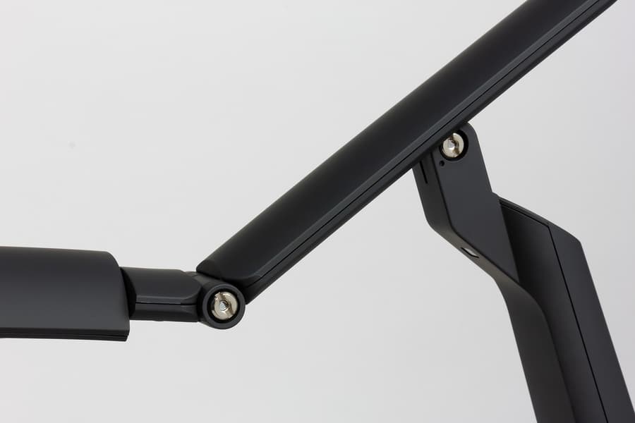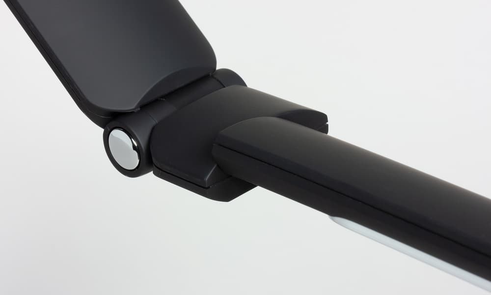 Первый шарнир позволяет отклонять первое колено вверх на 19 градусов и вниз на 36 градусов относительно горизонтального положения, диапазон второго шарнира — 88 градусов вверх и 98 градусов вниз, а третий шарнир позволяет поворачивать последнее колено со светорассеивателем на ±30 градусов вокруг продольной оси. Столько степеней свободы позволяет в достаточно широких пределах настраивать направление потока света и в небольших пределах высоту источника света относительно плоскости стола (при горизонтальном положении светорассеивателя — это от 334 до 420 мм).