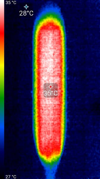 В случае лампы Remilicht LA-F638, также работавшей продолжительное время на максимальной яркости, осветительный блок нагрелся всего до 36 градусов.