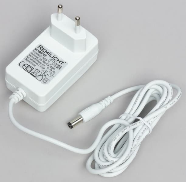 Затем подключить кабель от адаптера в разъем на снизу на лампе, а сам адаптер вставить в розетку. Длина кабеля от адаптера — 1,8 м.
