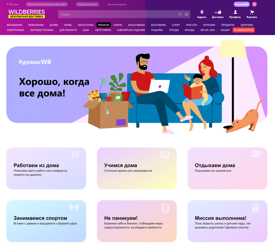 Времена многочисленных ограничений в работе разные магазины переживают по-разному: кто-то вообще сворачивает деятельность, кто-то концентрируется на онлайн-продажах и доставке. Магазин Wildberries пошел немного другим путем, продолжив выдавать заказы в собственных пунктах самовывоза. Но формат получения покупки при этом сильно изменился — никаких расчетов на месте и уж тем более примерок: оплатил на сайте — пришел — забрал — ушел. Зато совершенно бесплатно и без ограничения по сумме заказа, что особенно приятно. В общем, пробуем сделать и получить покупку быстро и безопасно.
