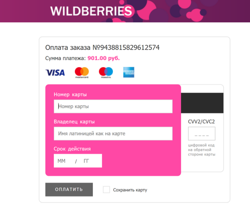 Далее вводим данные карты — здесь все как всегда. Есть возможность сохранить данные для более быстрой оплаты в будущем.
