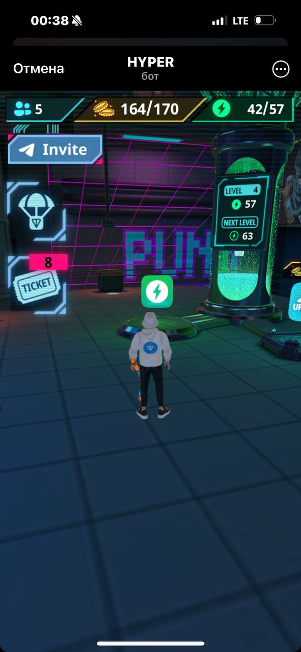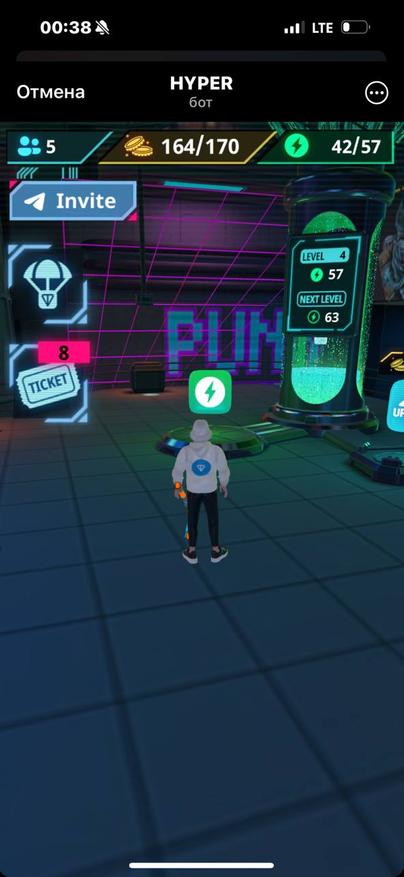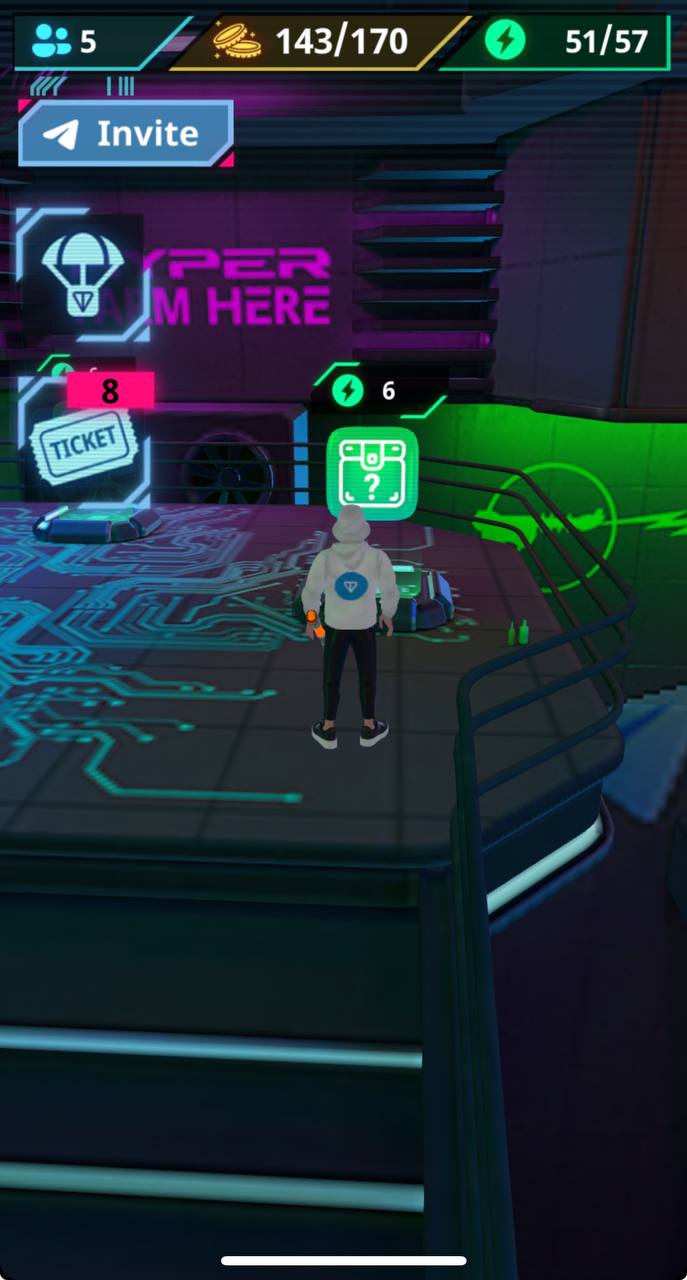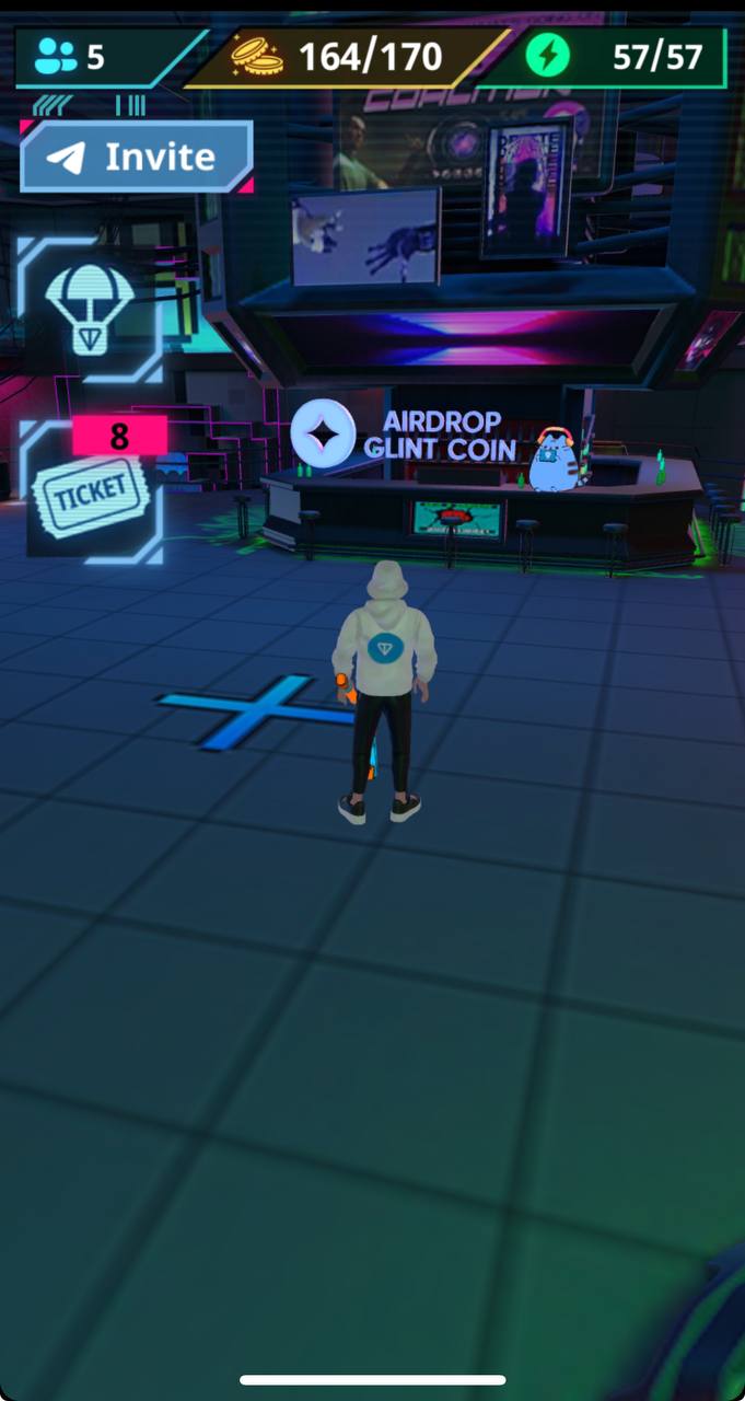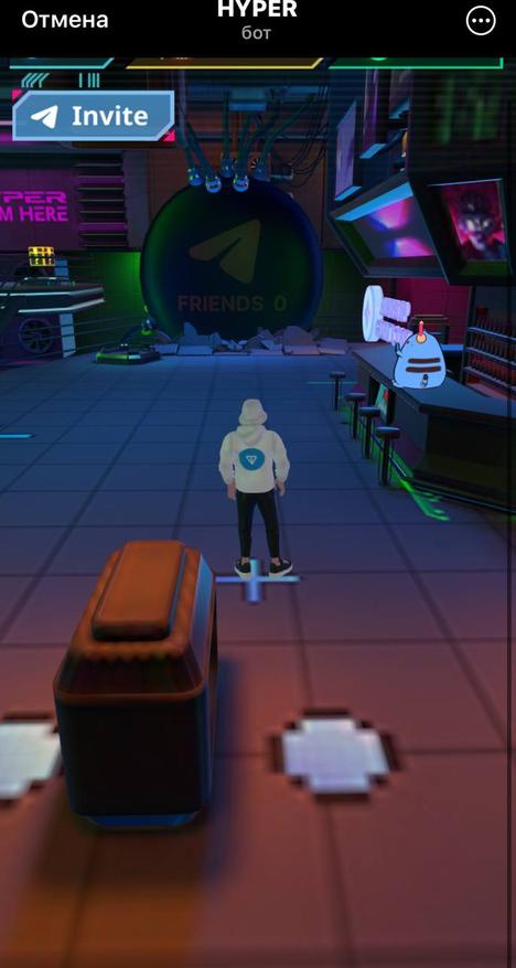 Для начала игры переходим по ссылке в приложение Telegram. После чего ждём загрузки и попадаем в комнату метавселеной. Далее нажимаем «начать игру» и следуем подсказкам. Для начала бежим и забираем кирку, после чего поднимаемся на подиум и разрушаем бокс. Далее спускаемся вниз к генератору и за полученные из бокса монеты повышаем его уровень. Затем, левее от значка повышение уровня генератора, забираем энергию. Следующим этапом бежим к барной стойке и узнаем информацию о предстоящем дропе для ранних пользователей. Разворачиваемся на 360 градусов и идём к значку «wallet», где подключаем свой Telegram кошелёк.