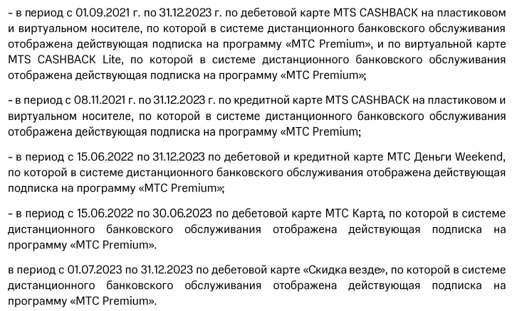 В общем, платить за связь нужно, да и подписка Premium стала полезнее, чем каких-то пол-года назад — но и она денег стоит. Которые желательно попробовать полностью или частично отбить — для чего искомая акция очень хорошо подходит. Единственное «но» — в её рамках кэшбек ограничен 1000 фантикорублей на карту, причем карты с одинаковым тарифным планом считаются одной. Вот с разными можно и покомбинировать, но это уже особый спорт. А хотя бы одной пользоваться стоит — как минимум пол-года, что в современных условиях нормальный такой горизонт планирования. Так что кто этим методом экономии и ранее пользовался, может еще несколько месяцев быть спокойным. Кто не пользовался — может попробовать. Я из всего многообразия карт банка рекомендую кредитную «MTS Cachback», про которую уже подробно писал. Правда, когда писал шла акция с возможностью получить безусловно бесплатное обслуживание карты — которую потом несколько раз повторили и продлили, но 30 июня всё закончилось. С другой стороны, условие бесплатности и по-умолчанию вполне щадящее — нужно тратить в месяц не менее 5000 рублей из кредитного лимита, что в рамках походов за продуктами с лихвой будет перекрыто. Также у новых клиентов есть возможность получить от банка 1500 рублей при оформлении карты по моей ссылке — все условия там расписаны. Кстати, не удивляйтесь увидев по ссылке информацию о завершении акции в супермаркетах 30 июня — ну вот так «МТС Банк» информацию на сайте обновляет. Кого пугает — лучше не ходить :) Если не пугает, то есть смысл поторопиться — до 16 июля можно вписаться в ещё одну акцию от банка и получить 5000 рублей приветственного кэшбека при выполнении несложных условий.