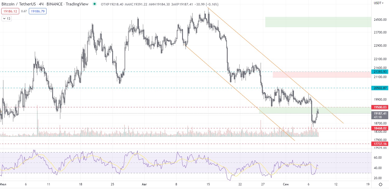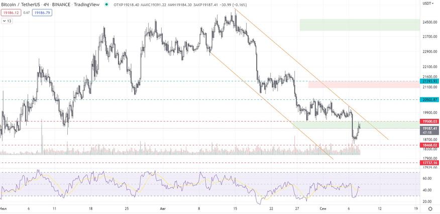 Очень сильная ценовая зона 20к, которую защищают медведи. Шортовый приоритет сохраняется.
