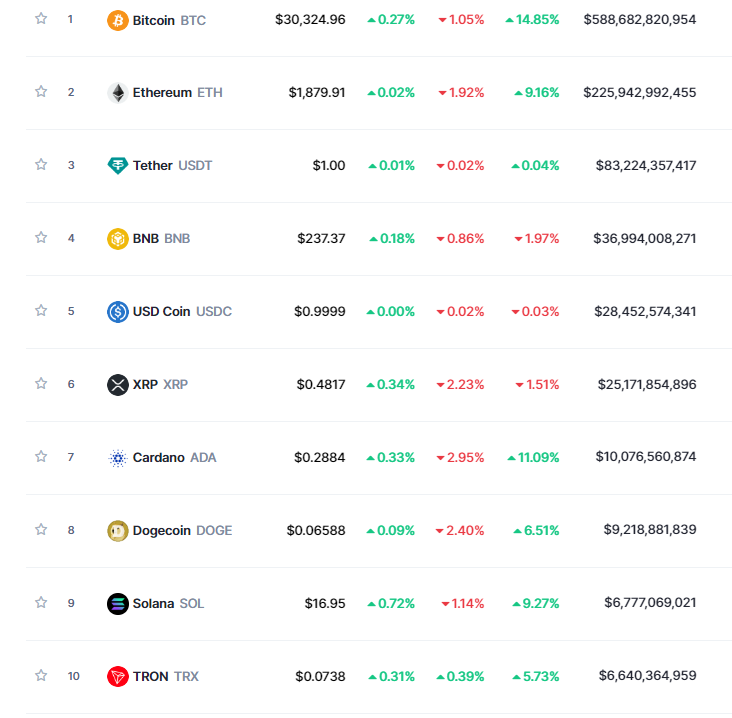 Биткоин пока удерживается выше отметки 30 000 долларов, но не смог закрепиться выше 31 000 долларов, где он оказался в конце прошлой недели.